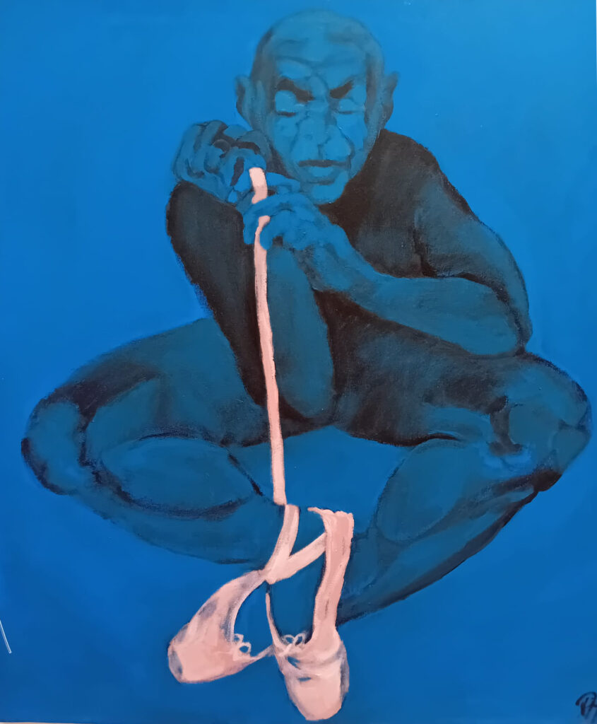 Materiaalkeuze is afhankelijk van hoe een thema zich gaat vormen, van zoekend tekenen naar een concrete vorm in olie of acrylverf.
